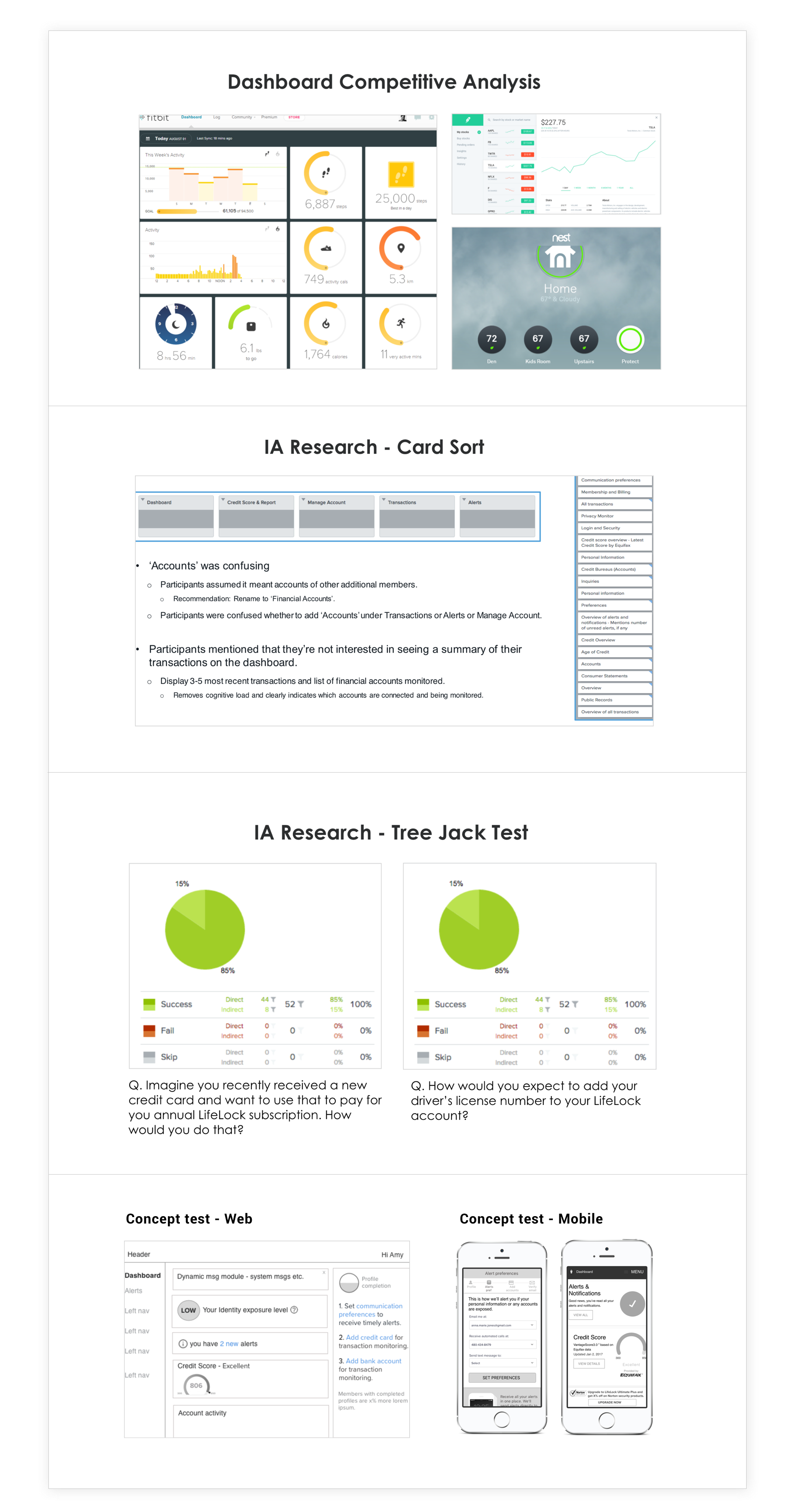 I led the team to conduct research on concepts, set the vision and strategy for the redesign of member portal mobile and web flows at LifeLock. The redesigns incorporated the newly introduced UI patterns as well.