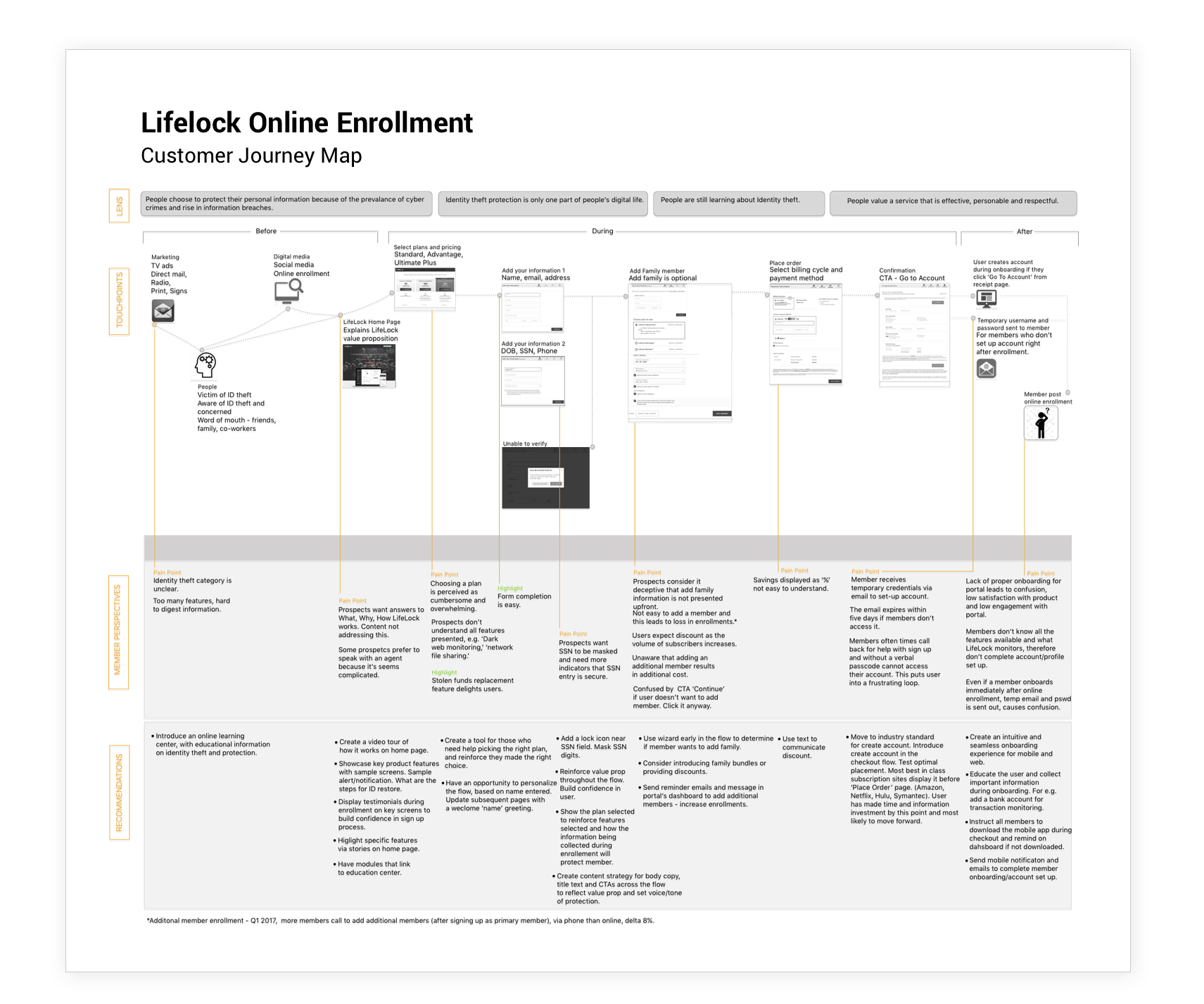 RESEARCH AND DESIGN PROCESS – I led the team to develop a comprehensive journey map of the customer touchpoints for online and phone enrollment. The team conducted user research and implemented design changes based on qualitative and quantitative insights.