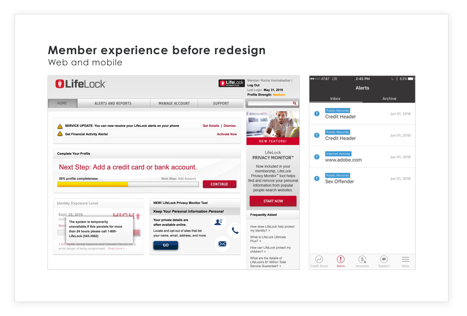 There was a huge opportunity to deliver an intuitive and seamless experience to increase task completion. The engineering team was also moving to a new stack and this added more complexity to the overall project. In addition, LifeLock products lacked a unified look and feel from a brand standpoint, as part of the redesign we introduced new brand guidelines.